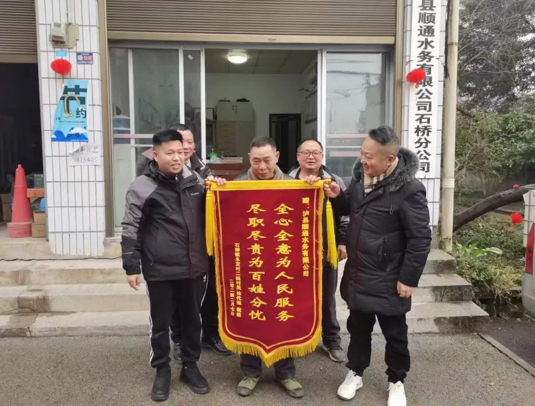 2月7日,石橋鎮永定村送來錦旗,感謝順通水務公司解決用水問題,為民辦實事。
