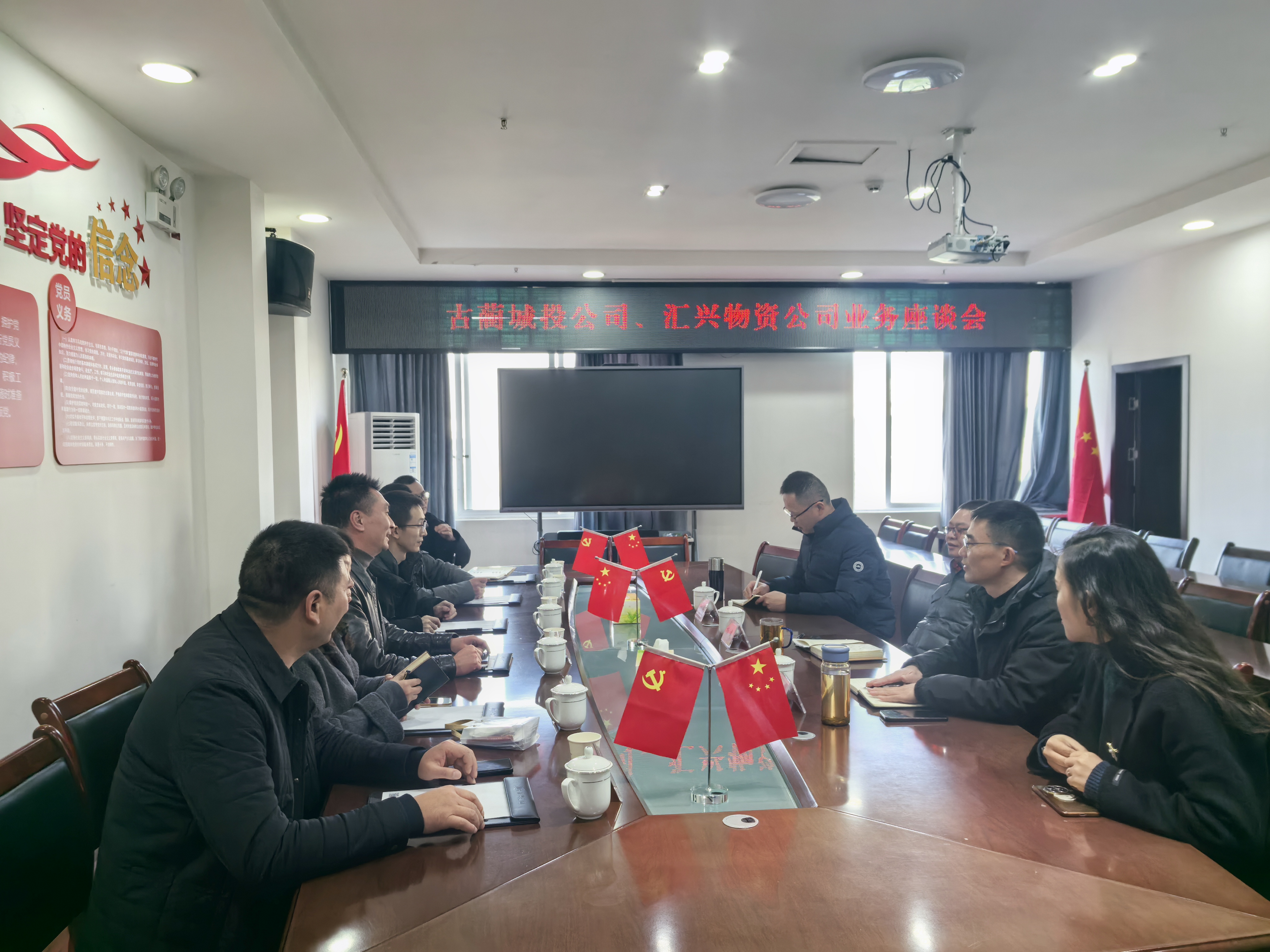 12月31日下午,古藺城投公司與匯興物資公司就貿易業務進行交流洽談。通過本次座談,雙方基本達成了在農副產品貿易上報團合作的初步意向。集團公司副總經理楊建參加會議。