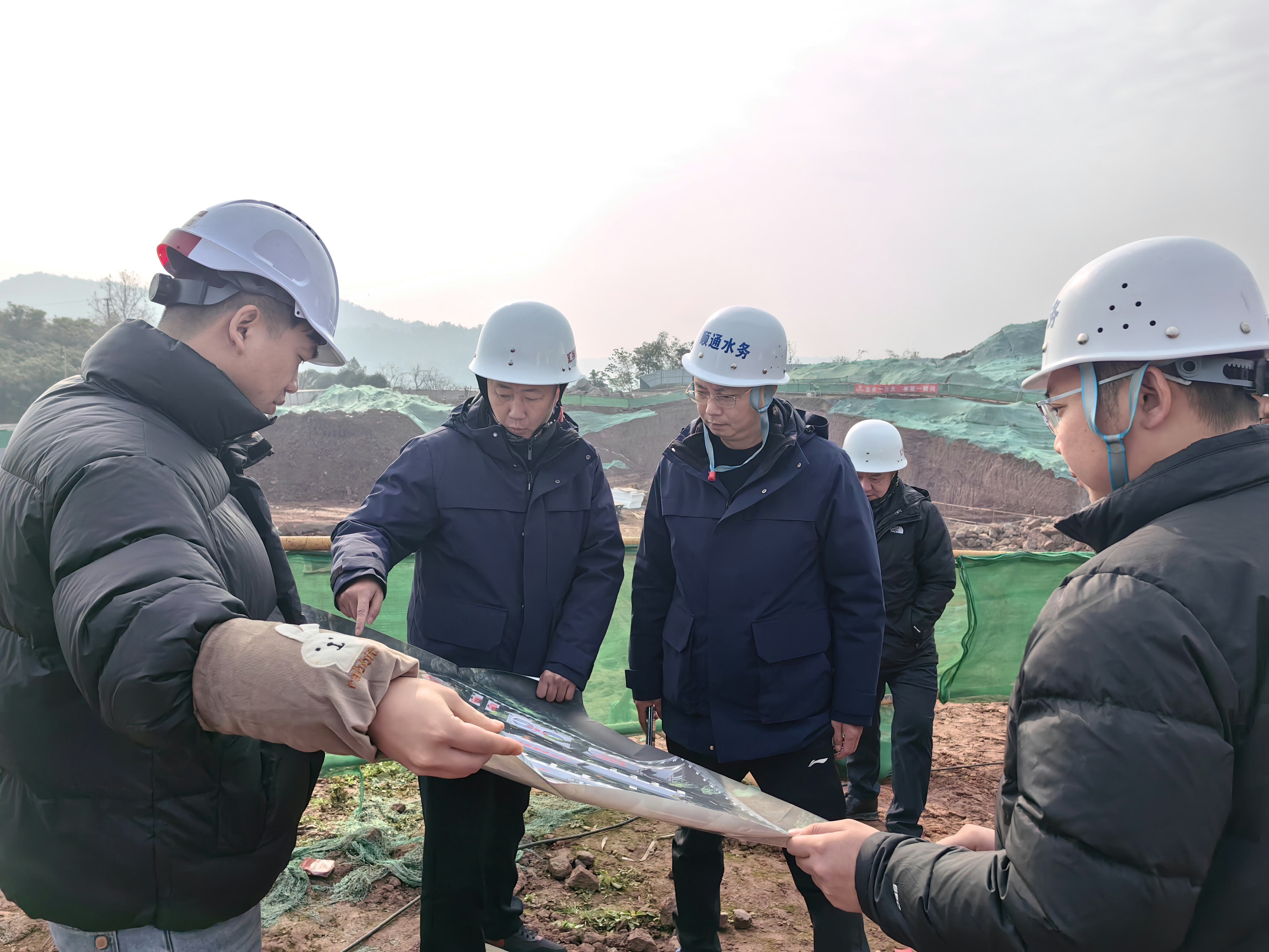 12月30日,集團公司董事長黃寧到順通公司兆雅鎮供排水一體化項目一標段二批次水廠建設項目視察安全環保工作,強調要加強現場安全管理、做好臨邊防護、完善安全環保設施設備、控制揚塵和噪聲,在保質量、保安全的前提下開展施工作業。集團公司綜合部、城投公司、順通公司參加陪同。