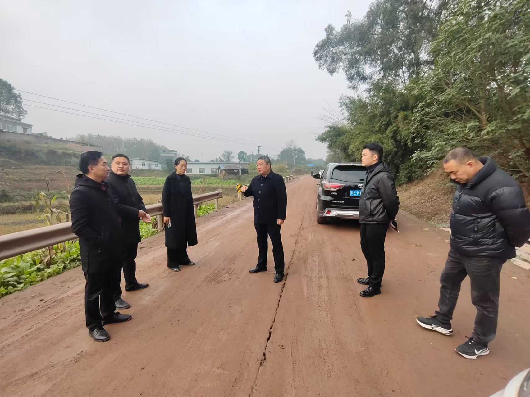 12月30日上午,集團公司董事長黃寧到瀘縣x083太合路太伏至萬定段檢查項目施工情況,要求施工單位攻堅克難,加班加點趕施工進度,做好保通保暢相應措施;并增設安全警示標識標牌,確保行車和行人安全,集團公司綜合部、城投公司、龍興公司參加。